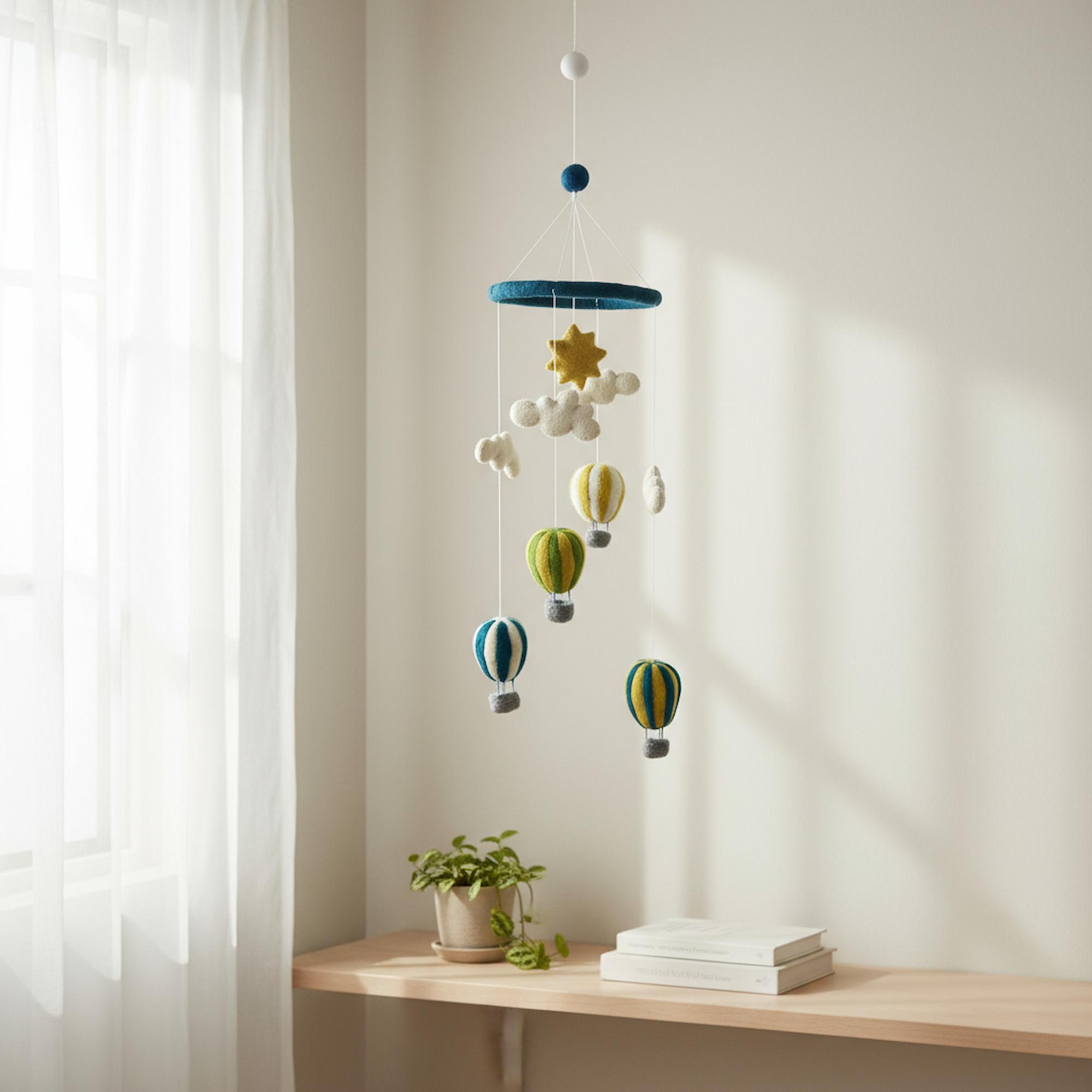 Perfect for hanging above a crib or changing table, the soft shapes and playful colors help stimulate visual development while creating a calming, dreamy atmosphere. It also makes a thoughtful, heartwarming gift for baby showers or new parents who value meaningful, handcrafted pieces.