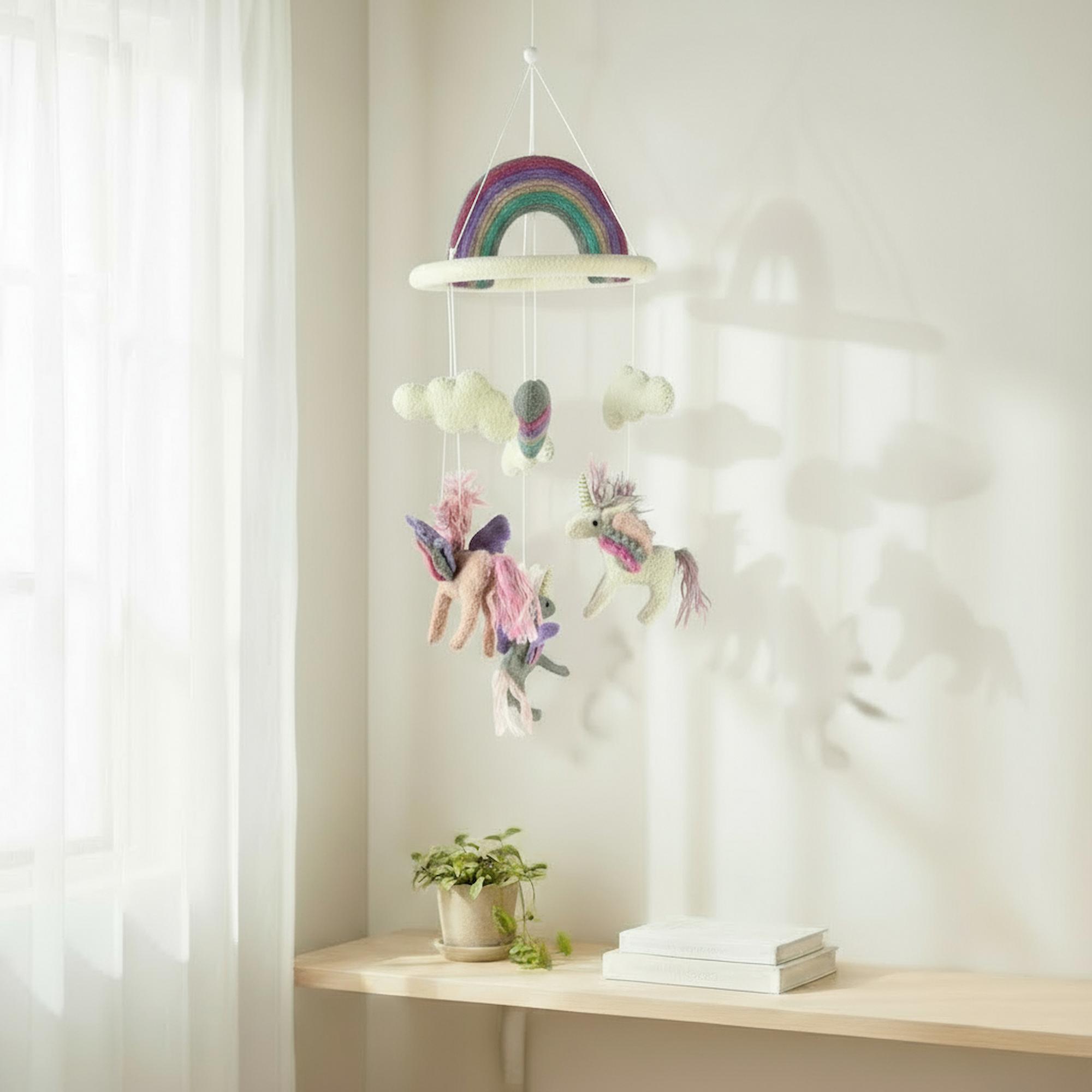 Lovingly handmade by women-led artisan co-ops in Nepal, each piece is carefully crafted from high-quality felt and dyed with AZO-free, eco-friendly dyes. Safe, sustainable, and beautifully unique, this mobile is as kind to the planet as it is to your little one.
